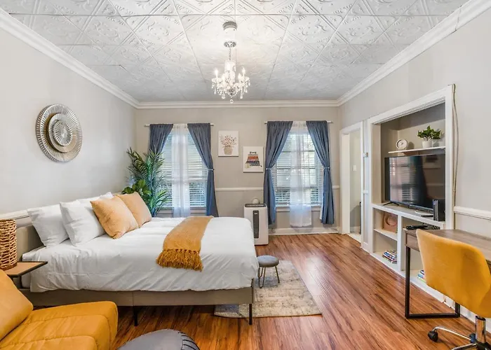 Het 1-slaapkamer Your Charming Boho Abode appartement bestaat uit een zitruimte en is voorzien van een bank en een bureau, evenals moderne voorzieningen zoals een flatscreen TV met satelliet zenders. Een strijkijzer en strijkplank, airconditioning zorgen voor een comfortabele sfeer, samen met rookmelders. Deze accommodatie nodigt gasten uit naar 1 slaapkamer. 1 badkamer is gecomplementeerd door een apart toilet, een badkuip en een douche. Je vindt er ook een haardroger en handdoeken.